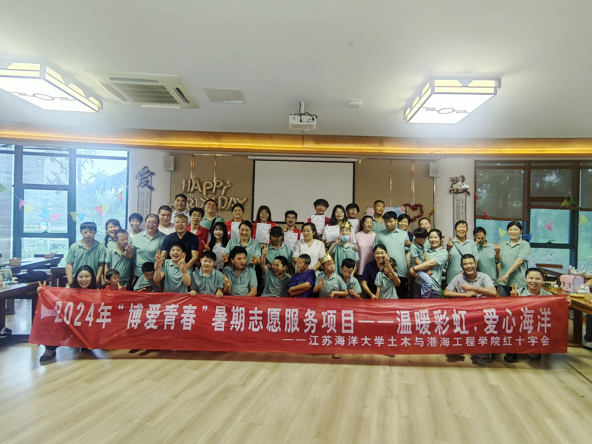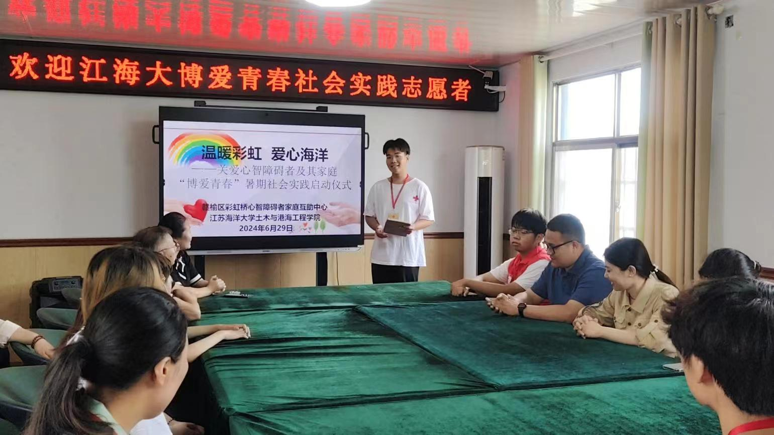 七月,伟德国际bevictor1946的博爱青春“温暖彩虹 爱心海洋”暑期社会实践团队带着忐忑与期待的心情来到了赣榆区彩虹桥心智障碍者家庭互助中心,这个充满包容与爱的地方。