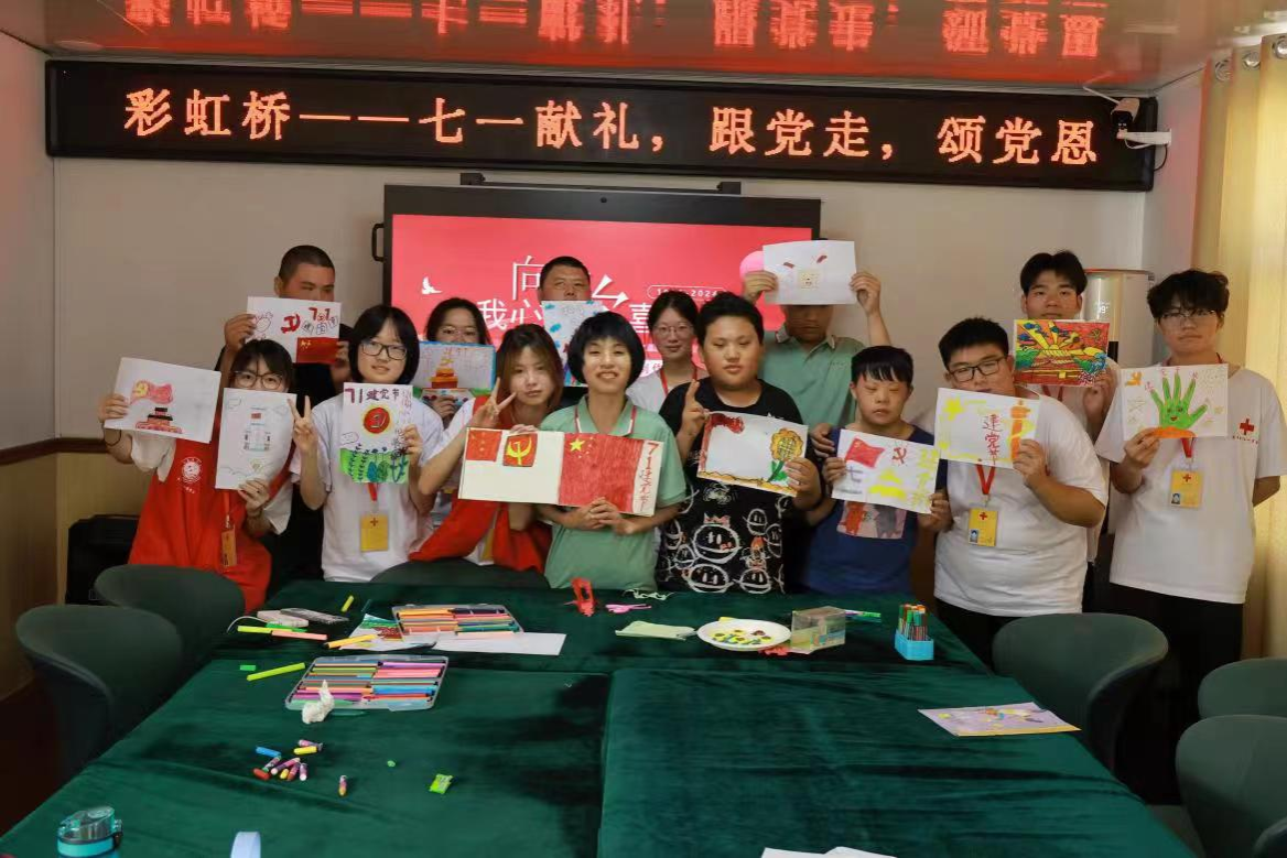 七一建党节,志愿者们与孩子们一起学习党的历史,创作手抄报与剪纸,每一幅作品都承载着对祖国的深情与敬意。志愿者们讲解了建党小知识,进行了建党节手抄报绘画,学习了“党”字的剪纸创作等等。看着大家画的国旗、党徽、中国航天火箭、天安门……志愿者感到非常自豪与满足。镜头记录下了志愿者与孩子们一起举着画作、比着剪刀手的画面,成为了永恒美好的回忆。