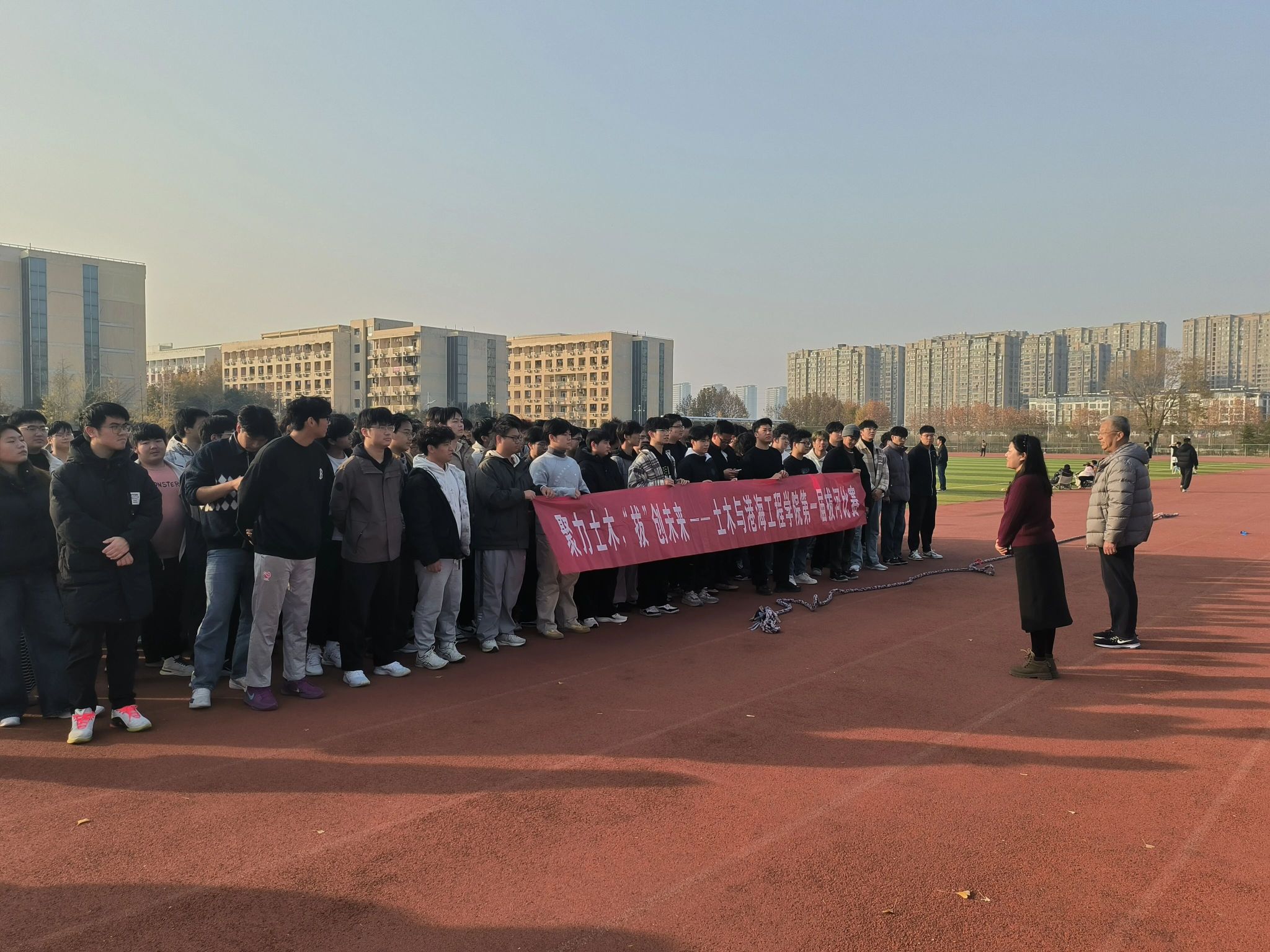 为丰富校园文化生活,增强班级凝聚力与团队协作精神,搭建班级和年级间交流互动的良好平台,充分展现土木学子奋发向上、团结拼搏的青春风采,2025年11月30日下午15:00,伟德国际bevictor1946首届“聚力土木,‘拔’创未来”拔河比赛在校园运动场激情开赛。公司关工委委员张三柱、团委书记卞辉、辅导员钟孟晨和李旭丰老师现场指导,为参赛学子加油鼓劲。来自公司大一、大二、大三共21支队伍、252名学子齐聚赛场,以绳为媒、以赛会友,展开了一场力量与意志的巅峰对决,用汗水书写青春的奋进篇章。