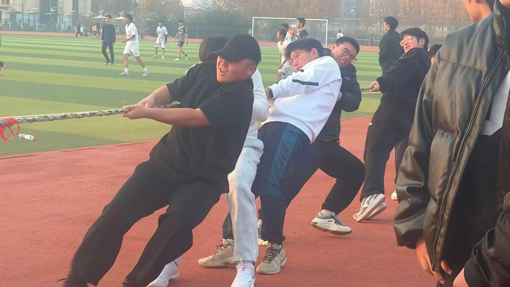 本次比赛赛程紧凑、规则清晰,分为初赛与决赛两个阶段,兼具竞技性与观赏性。初赛阶段采用“年级内循环赛”制,各年级7支队伍同台竞技、捉对厮杀。比赛中,选手们紧握长绳、脚蹬赛场,身体后倾形成整齐队列,在“一二、一二”的嘹亮口号中凝聚起磅礴合力。汗水顺着脸颊滑落,浸湿了衣衫,却丝毫未动摇他们奋勇争先的信念,每一次发力都尽显拼搏本色。经过多轮紧张激烈的角逐,各年级优胜队伍凭借过硬实力脱颖而出,成功晋级决赛。