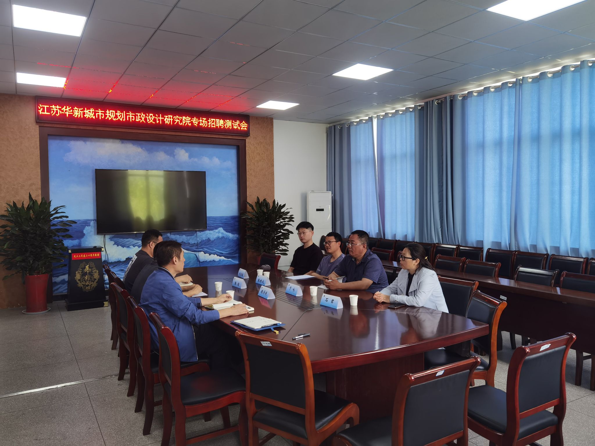 交流会后来访企业在公司会议室举办了建筑设计专场招聘会。